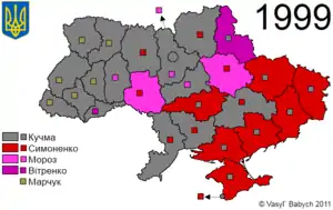 Crimea | 34.4 | 37.5 | 2.4 | 9.1 | 6.3 | Leonid Kuchma | ![]() |