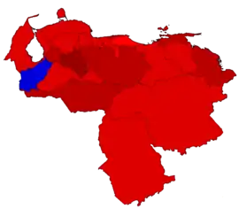 Yaracuy | 405 385 | 194 412 | 59,99% | ![]() | 127 442 | 39,32% | ![]() | 2 179 | 0,66% | 332 031 | 82,11% |