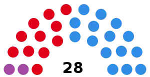 - 28 diputados provinciales, elegidos bajo el sistema de representación proporcional por listas con una bonificación de mayoría, que establece 15 escaños asegurados para la lista más votada.