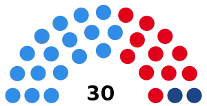 - Un poder legislativo unicameral compuesto por una Cámara de Diputados de 30 escaños, elegidos mediante representación proporcional por listas con todo el territorio provincial como único distrito electoral. Los diputados se asignan entre las listas que hayan superado un 3% en votos con respecto al padrón electoral general. En caso de un empate entre dos listas, se procederá a un sorteo organizado por la autoridad electoral competente para dirimir cual de las dos listas obtiene un escaño extra.[14]