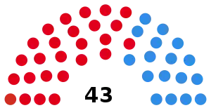- 24 diputados electos en 8 circuitos electorales de 3 diputados cada uno por sistema d'Hondt con un piso electoral de 22%.