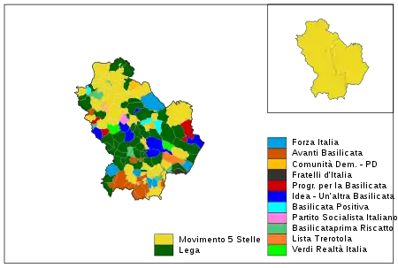 Federación de los Verdes Realidad Italia Progresistas por Basilicata Adelante Basilicata Proyecto Popular Centro Democrático Partido Republicano Italiano Primero Basilicata Partido Socialista Italiano | |||||||||||