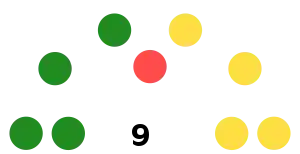 Partidos y coaliciones | Voto popular | Escaños | ||||