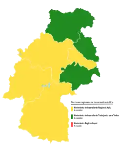 Movimiento Independiente Regional Unidos por Huancavelica (UxH) | 17,332 | 9.45 | –6.74 | 0 | ±0 | |