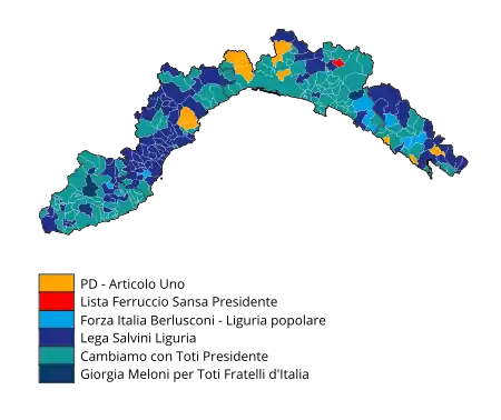 El resultado de las elecciones fue una victoria absoluta del actual presidente de Liguria, Giovanni Toti.[3]