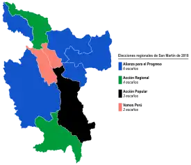 La siguiente tabla muestra la composición del Consejo Regional de San Martín antes de las elecciones.