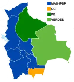 Movimiento al Socialismo | MAS-IPSP | 1 870 652 | 50,10 % | 9 | 6 |