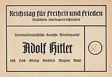 El 29 de marzo de 1936 tuvieron lugar unas elecciones para elegir al Reichstag.[1] Estas además tomaron la forma de un referéndum de una sola pregunta, preguntando a los votantes si aprobaban la ocupación militar en Renania. En las elecciones parlamentarias se presentó una sola lista, formada exclusivamente por los nazis y algunos candidatos independientes partidarios del régimen, para el nuevo Reichstag. Al igual que las anteriores elecciones en la Alemania nazi, se caracterizó por la alta participación, la intimidación de votantes y un resultado enormemente desequilibrado, con un 99,0% de participación oficial.
