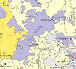 El Obispado de Tréveris se constituyó durante el Imperio romano, más concretamente en el siglo III. La ciudad de Tréveris era en aquel momento una de las más importantes del Imperio. Desde el siglo VI se convierte en arzobispado, bajo cuya jerarquía se sitúan los obispados de Metz, Toul y Verdún. Durante la época carolingia los arzobispos de Tréveris comenzaron a establecer un patrimonio territorial como hicieron otros tantos príncipes de la Iglesia. Hay que diferenciar el territorio que pertenece como dominio territorial a los arzobispos de Tréveris, denominado en alemán Erzstift (patrimonio arzobispal), de su ámbito de jurisdicción espiritual, es decir del Obispado. Los límites del Arzobispado eran en general más amplios que los del Erzstift del arzobispo, mientras que algunos territorios pertenecientes al Erzstift, en cambio, quedaban fuera de la jurisdicción espiritual del Arzobispo de Tréveris y dependían del Arzobispado de Colonia.