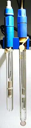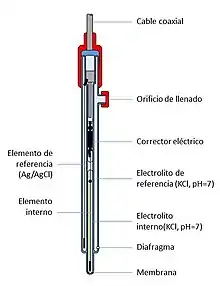 Una sonda de medición de pH moderna típicamente es un electrodo combinado, el cual contiene tanto al electrodo de referencia como al electrodo de medición dentro de un mismo cuerpo. Un electrodo combinado consta de las siguientes partes.: