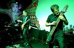 ![]() Electrodomésticos en el bar El Clan: Carlos Cabezas en guitarra y Silvio Paredes en Chapman Stick | ||