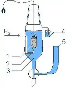 La reacción se lleva a cabo burbujeando gas hidrógeno en una disolución de HCl, sobre un electrodo de platino. Las condiciones de este experimento se denominan "estándar" cuando la presión de los gases involucrados es igual a 1 atm., trabajando a una temperatura de 25 °C y las concentraciones de las disoluciones involucradas son igual a 1M.[1] En este caso se denota que: