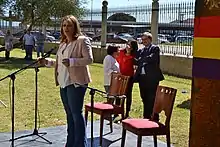 ![]() Elena Amaya en la inauguración de un memorial a los republicanos en mayo de 2019 | ||