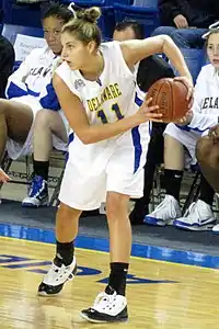 En su tercer año en Delaware, acabó como la máxima anotadora de Estados Unidos, terminando la temporada con un promedio de 28,1 puntos por partido.[9]