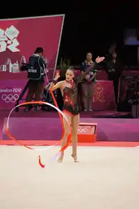 - Ejercicio de 3 cintas y 2 aros en la calificación de Londres 2012