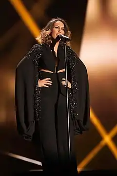 ![]() Dani interpretando "I'm Alive" en el Festival de la Canción de Eurovisión 2015. | ||