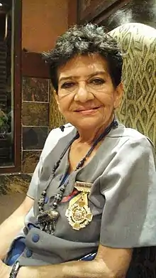 ![]() Elina Manzano de Félix recibiendo la Condecoración Doctora Matilde Hidalgo de Prócel | ||