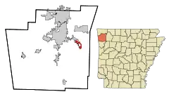 ![]() Localización en el condado de Washington y en el estado de Arkansas | ||