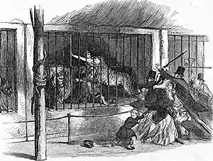 Richard Cooper Todd, cirujano, adjunto a la Artillería Real, acuartelada en las Brompton Barracks, dijo que estaba presenciando la exhibición en el momento del suceso y que estaba parado bastante cerca de la cuerda frente a la jaula. Vio entrar a la difunta y al entrar el tigre no parecía ser muy amigo de ella; ella lo golpeó al entrar y él se acostó. Ella procedió a su actuación con el león y luego se dio la vuelta y volvió a golpear al tigre. Parecía enojado e inmediatamente pareció revolverse contra la difunta; se levantó sobre sus patas traseras y la agarró del cuello, cayó de espaldas y el tigre se agachó sobre ella, él [el cirujano] no volvió a verla hasta que la sacaron de la jaula, cuando se apresuró en ayudarla. Estaba perfectamente insensible, había perdido mucha sangre y su cara y labios estaban muy pálidos. Todavía estaba viva, el corazón latía, pero estaba totalmente inconsciente. El testigo colocó su mano sobre la herida del cuello para detener el sangrado y administró un poco de aguardiente a la fallecida, pero no pudo tragarlo y en muy pocos minutos su corazón dejó de latir. Había cuatro heridas en el lado izquierdo del cuello, una herida leve en la pierna derecha y otra en el mentón, causadas por los dientes del tigre, habiendo causado la mandíbula inferior del animal una herida muy grande debajo del mentón, que ayudada por el shock que había sufrido su sistema, produjo la muerte. El jurado emitió un veredicto en el sentido de que un tigre mató a la difunta mientras se exhibía en su jaula y expresó una fuerte opinión en contra de la práctica de permitir que las personas actúen dentro de una jaula con animales. Se recordará que, cuando hace unos dos años, el señor Wombwell exhibió su colección de animales a la familia real en Windsor, la "Reina de los Leones" estaba especialmente ansiosa por exhibir el extraordinario dominio que había adquirido sobre los feroces animales, pero Su Majestad prohibió expresamente la exhibición. Desde entonces la desgraciada fallecida había sido el principal atractivo de la exposición en todas las principales localidades del Reino Unido. Es de esperar que esta horrible terminación de su carrera tenga el efecto de impedir tales actuaciones en el futuro.[4]