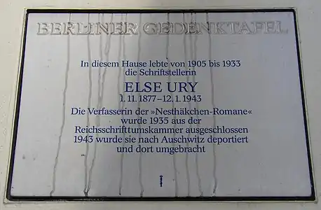 - Placa conmemorativa en recuerdo de Else Ury en Ziegelstraße 12 (Berlín-Mitte)