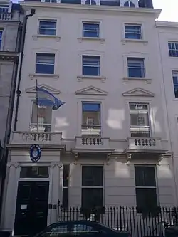 El edificio principal de la embajada está ubicado en el número 65 de Brook Street en Londres. La entrada a la sección consular se encuentra en la esquina del número 27 de Three Kings' Yard, y la oficina del agregado de defensa en los números 134 y 136 del Buckingham Palace Road, Victoria.[1] La residencia oficial del embajador se encuentra en el 49 Belgrave Square.[2]