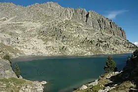 El embalse de Amitges de Ratera está formado por una presa construida en 1958 sobre el lago Grande de Amitges, de origen glaciar, en la cuenca del río Ratera, a 2370 m de altitud.