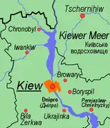 - Esta obra contiene una traducción derivada de «Kiev Reservoir» de Wikipedia en inglés, publicada por sus editores bajo la Licencia de documentación libre de GNU y la Licencia Creative Commons Atribución-CompartirIgual 3.0 Unported.
