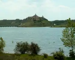 Vista de Maderuelo con el embalse de Linares en primer plano.