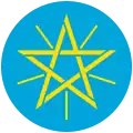 La versión actual del escudo de Etiopía fue adoptada en 2009. Está compuesto por un círculo de color azul en el que figura una estrella dorada de cinco puntas diseñada a modo de pentalfa o variante del "Sello de Salomón".
