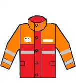 - Chubasquero reflectante rojo/naranja, con franjas de reflexión.
