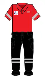 - Pantalones azul oscuro / negro con dos franjas reflectantes en cada pierna.