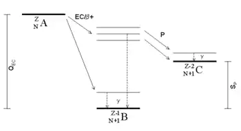- Esta obra contiene una traducción total derivada de «Proton emission» de Wikipedia en inglés, publicada por sus editores bajo la Licencia de documentación libre de GNU y la Licencia Creative Commons Atribución-CompartirIgual 3.0 Unported.