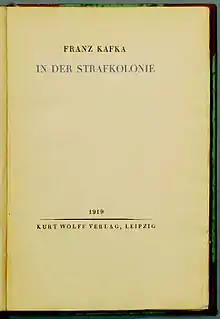 - Franz Kafka, In der Strafkolonie,Kurt Wolff Verlag, Leipzig, 1919