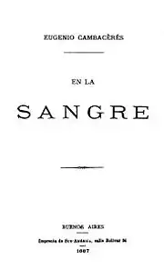 En la sangre es una novela escrita por el autor argentino Eugenio Cambaceres, publicada en 1887. Fue la cuarta y última novela de Cambaceres. En el texto, se narra la historia de Genaro, un hijo de inmigrantes italianos en Buenos Aires durante el siglo XIX.[1]