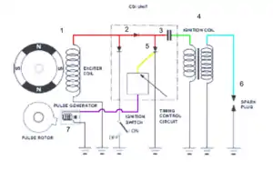El encendido electrónico o , que puede ser del tipo TSI (Transistor System Ignition) o CDI (Capacitor Discharge Ignition), es un sistema de encendido para motores tanto de dos tiempos (2T) como cuatro tiempos (4T) en el cual la función de interrumpir la corriente del primario de la bobina para generar por autoinducción la alta tensión necesaria en la bujía no se hace por medios mecánicos como en el sistema de ruptor o platinos, sino mediante uno o varios transistores.