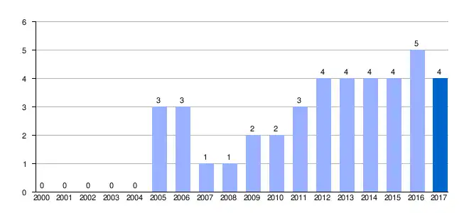 Gráfica de evolución demográfica de Encinasola de las Minayas entre 2000 y 2017 |