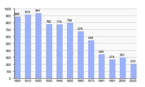 Gráfica de evolución demográfica de Endrinal entre 1900 y 2020 |