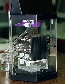 La energía química es la forma de energía que se almacena en forma de compuesto químico en un portador de energía y puede liberarse durante las reacciones químicas.[1] El término se remonta a Wilhelm Ostwald, quien lo escribió en 1893 en su libro de texto "Chemische Energie" (usa los términos "Energía química e interna") junto con otras formas de energía ("Energía mecánica", "Calor", "Energía eléctrica y magnética" y "Energía Radiante").