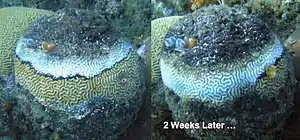 - Reacción de muerte súbita (en inglés: Rapid wasting), posiblemente causada por un hongo que crece en las zonas dañadas por el accionar del pez loro (Sparisoma viride).