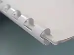 ![]() Canutillo con arillos de dos tamaños (el mayor posee la capacidad de encuadernar documentos de varios cientos de hojas) | |||||||||||||||||||||||||||||||||||||||||||||||||||
