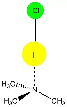 En 1814, Jean Jacques Colin describió la formación de un líquido con brillo metálico cuando mezclaba amoniaco gaseoso seco con yodo. La composición precisa del complejo I2...NH3fue establecida hasta 50 años después por Frederick Guthrie.[6] En su experimento, colocó I2 en amoniaco líquido. La naturaleza de la interacción molecular fue entendida otros cincuenta años después a través de los descubrimientos de Robert Mulliken sobre las interacciones de transferencia de carga y su detallada descripción por Odd Hassel.