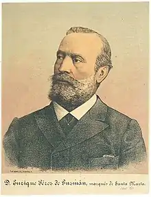 ![]() Enrique Pérez de Guzmán, marqués de Santa Marta, cromolitografía de Lit. Romillo para El Motín, periódico semanal. Madrid. 1891. Biblioteca Nacional de España | ||