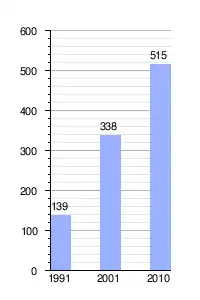 Variación intercensal | + 52,4 % (2001 - 2010) | |