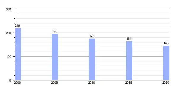 Gráfica de evolución demográfica de Entrambasaguas entre 2000 y 2020 |