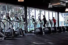 Una bicicleta elíptica es un aparato de gimnasio para hacer un tipo de ejercicio aeróbico de pie, que consta de dos pedales sobre los que se marcha y de dos barras verticales que se cogen con las manos para ayudar al movimiento de impulsión de las piernas y se hace más fácil el ejercicio.