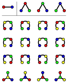 - El número Cn de grafos conectados no dirigidos de n vértices etiquetados satisface la relación de recurrencia[5]