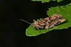 Las alas anteriores son de color blanquecino ocre, mezcladas y nubladas con marrón ocre. El borde costal extremo es blanco. Las alas traseras son blanquecinas, levemente moteadas de gris pálido hacia el margen posterior.[2] Se han registrado vuelos en adultos desde noviembre hasta principios de enero en una o más generaciones por año.