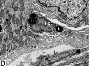 existen en todo el epitelio y son las células inmunitarias primarias en el epidídimo. Además, una población de fagocitos mononucleares (células dendríticas y macrófagos) residen en la base del epitelio junto con las células halo migratorias.[12]