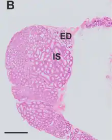 Durante la etapa embrionaria, y antes de la diferenciación epitelial, el receptor mesenquimales de andrógenos, junto con la inhibina beta A, facilitan el alargamiento y convolución/enrollamiento del túbulo.[2]
