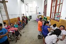 ![]() Ministra de la Producción Rocío Barrios visita el Hospital Apoyo de Iquitos, en la parte de atrás de la imagen se observa a los enfermos de dengue, 10 de marzo de 2020. | ||
